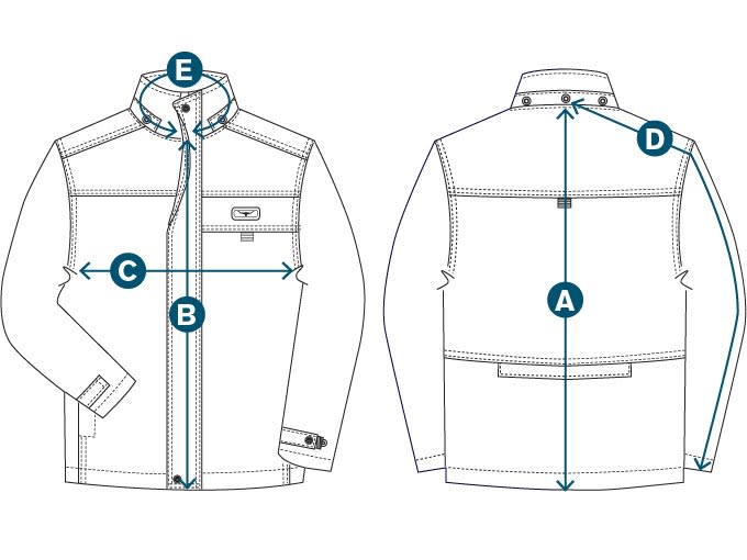 | Back length | Front length | Chest | Sleeve length | Neck circumference | |